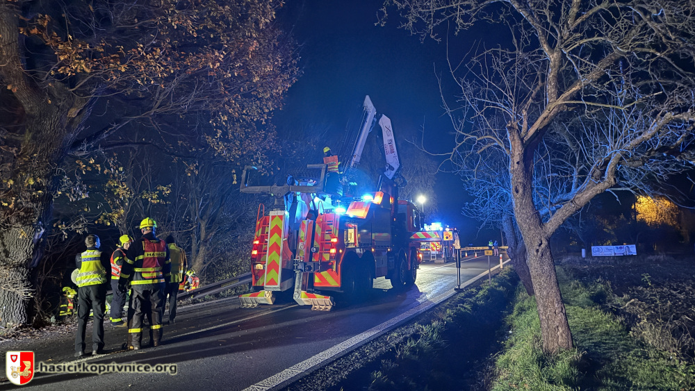 Dopravní nehoda dvou osobních vozidel, při níž došlo ke zranění čtyř osob. Jednotky poskytly zraněným předlékařskou první pomoc, odpojily akumulátory a zasypaly uniklé provozní kapaliny. Jedno z vozidel muselo být vyproštěno pomocí lanového navijáku z I. vozu HZS MSK Kopřivnice. Po vyšetření nehody ze strany PČR byl proveden závěrečný úklid komunikace.